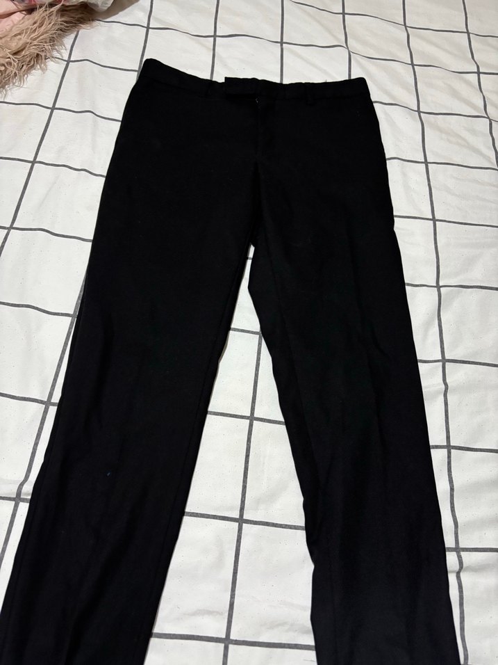 Siyah midi boy, regular fit kumaş pantolon, yırtmaç detaylı, sentetik kumaştan. Günlük kullanıma uygun sokak stili için ideal.