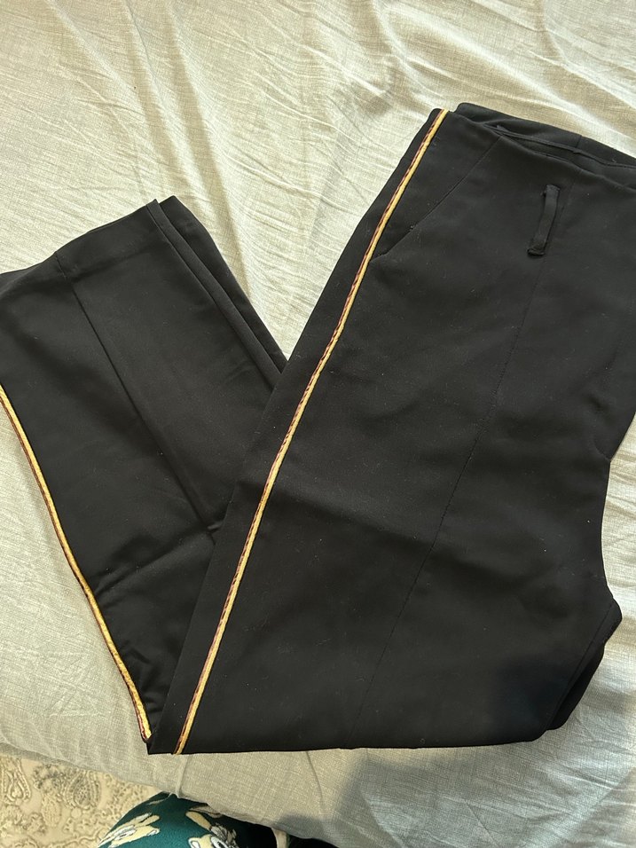 Siyah midi uzunlukta, regular fit kadın kumaş pantolon. Sentetik kumaştan, fermuarlı detaylı, ofis ve sokak stiline uygun.