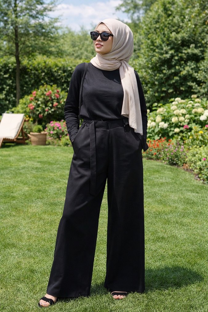 Siyah midi uzunlukta, regular fit kadın kumaş pantolon. Sentetik kumaştan, desen içermeyen, günlük rahat sokak stili için uygun, mütevazı ve zahmetsiz şıklık sunar.