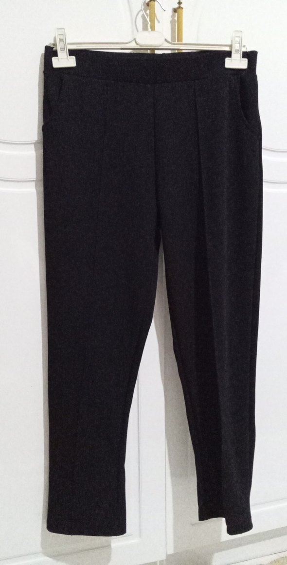 Siyah, orta boy, kadın kumaş pantolon, rahat kalıp ve yumuşak dokulu kumaştan. Ofis için sade ve şık tarzda. hiç kullanılmadı