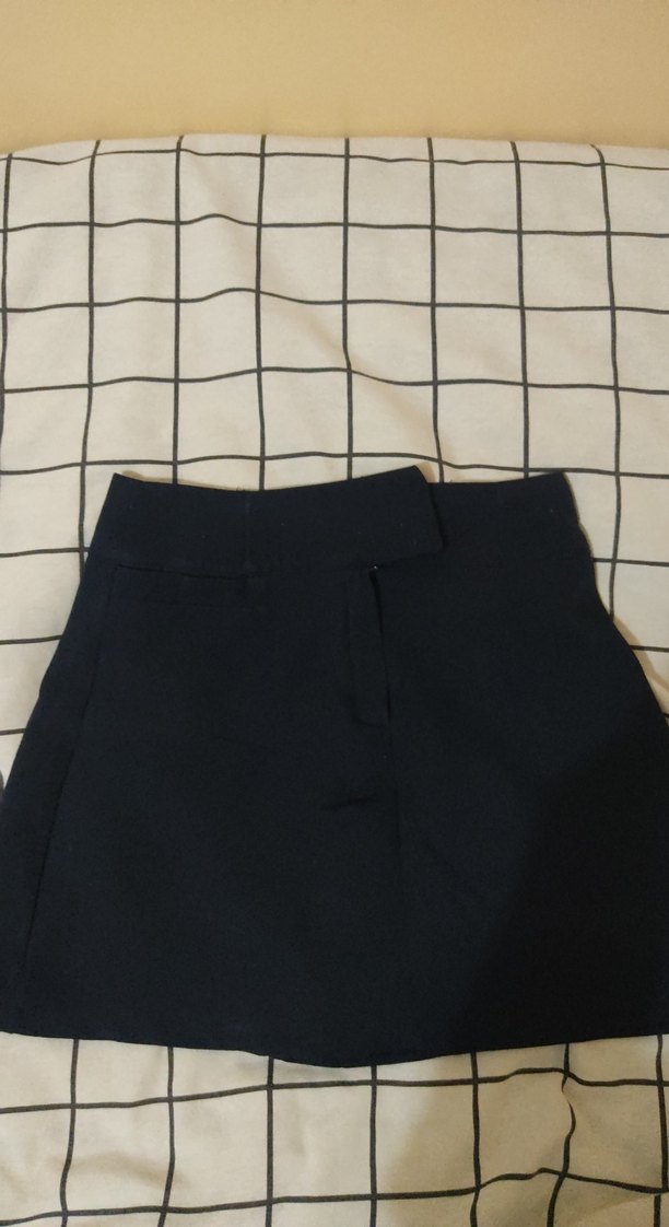 Siyah midi mini etek, düz ve sentetik kumaştan, rahat kesime sahip. Minimalist ve normcore tarzıyla ofis için şık ve sade bir tercih.