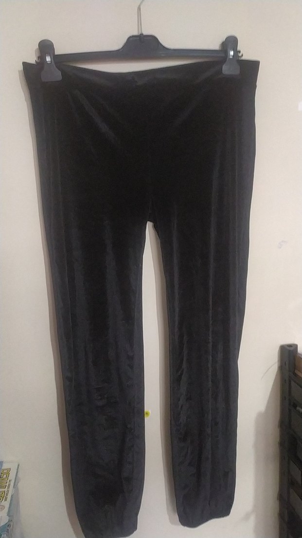 Siyah parlak ,kadife kumaştan, normal boy midi tayt. Spor ve günlük kullanıma uygun, goth athleisure tarzında, rahat ve şık görünümlü.
