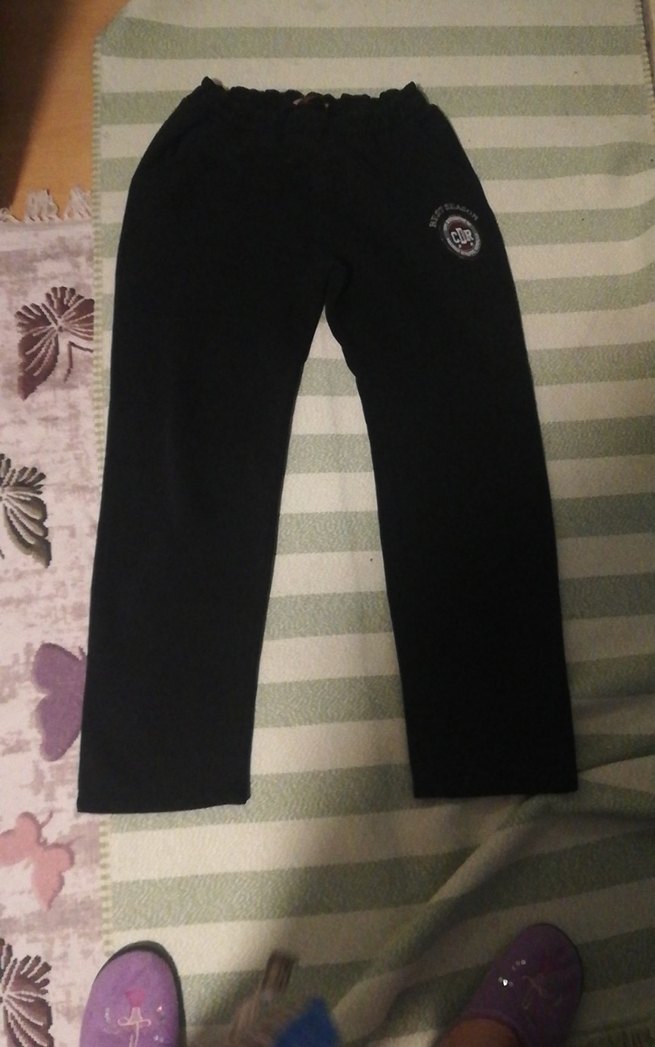 Yumuşak ve sıcak kumaştan, elastik bel bantlı, siyah renkli, bol kesim esofman altı, günlük kullanım için uygundur. Ön cep üzerinde minik bir leke var onun harici herhangı bır sorun yok. Boy 102cm.bel 78.üç iplik kalın.
