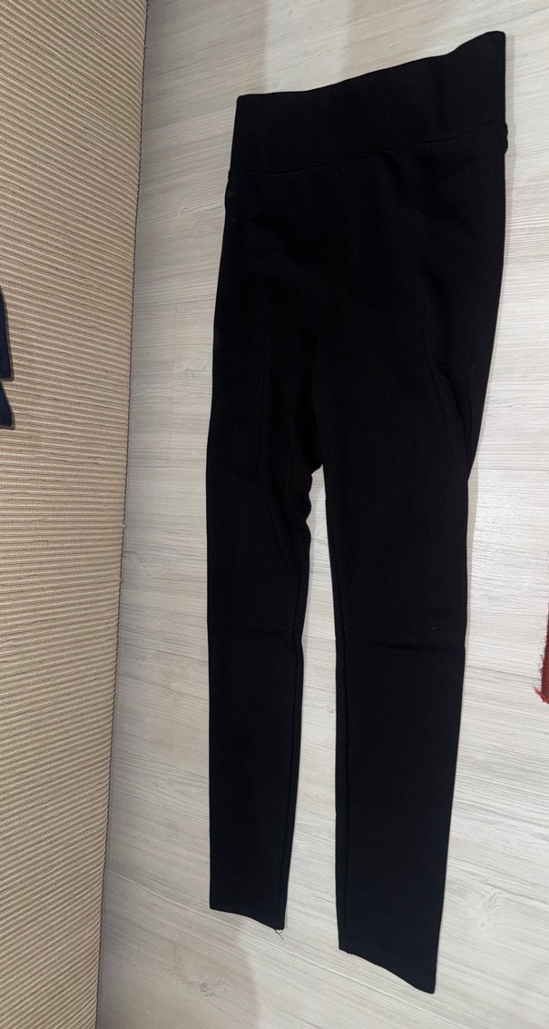 Siyah midi boy kadın tayt, düz ve sıkı kesimlidir. Sentetik kumaştan üretilmiş, günlük kullanım ve rahat sokak stili için uygundur.