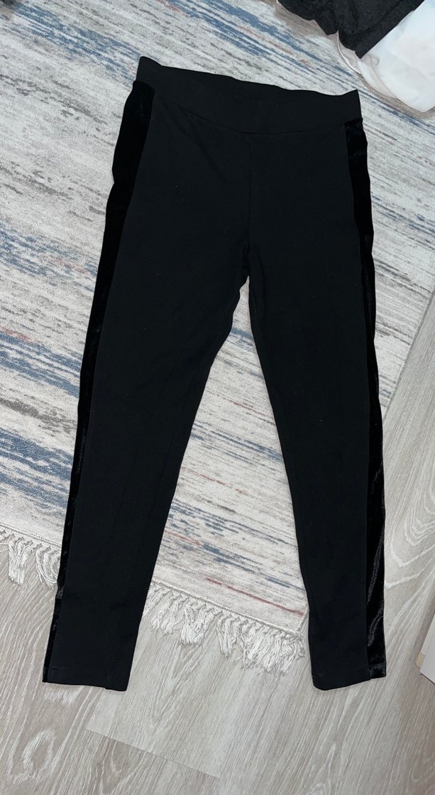 Siyah midi tayt, düz kesim ve yumuşak sentetik kumaştan. Ofis ve günlük sokak stili için rahat ve şık bir seçim. S beden kumaşı çok güzel çok az giyindim tertemiz hiçbir sorunu yok