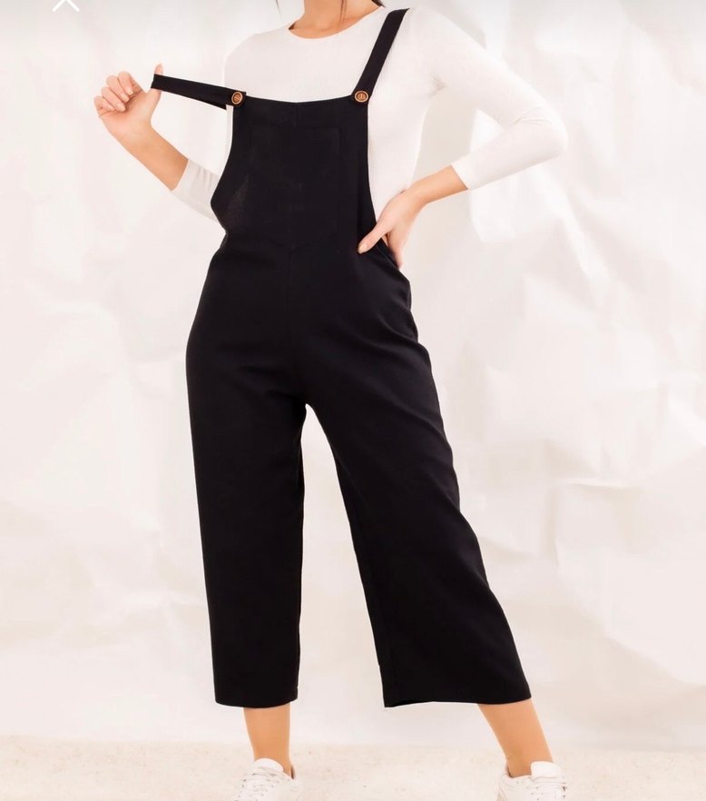 Siyah midi tulum, yuvarlak yaka ve ince askılı, rahat kesim ve şık tasarıma sahip sentetik kumaştan üretilmiştir. Günlük ve sokak stiline uygundur. M bedendir