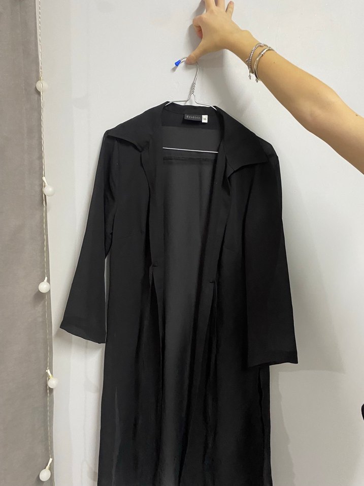 Siyah midi uzunlukta kadın tunik. rahat kesimlidir ve günlük kullanıma uygun. Tül gibi incedir
