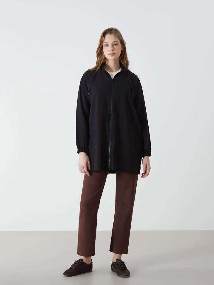 Siyah Midi Kadın Yağmurluk Yüksek Yaka