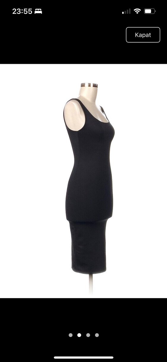 Siyah, kolsuz midi kalem elbise, Trıko Likra kumaştan üretilmiş. , günlük ve zahmetsiz şıklık sunar