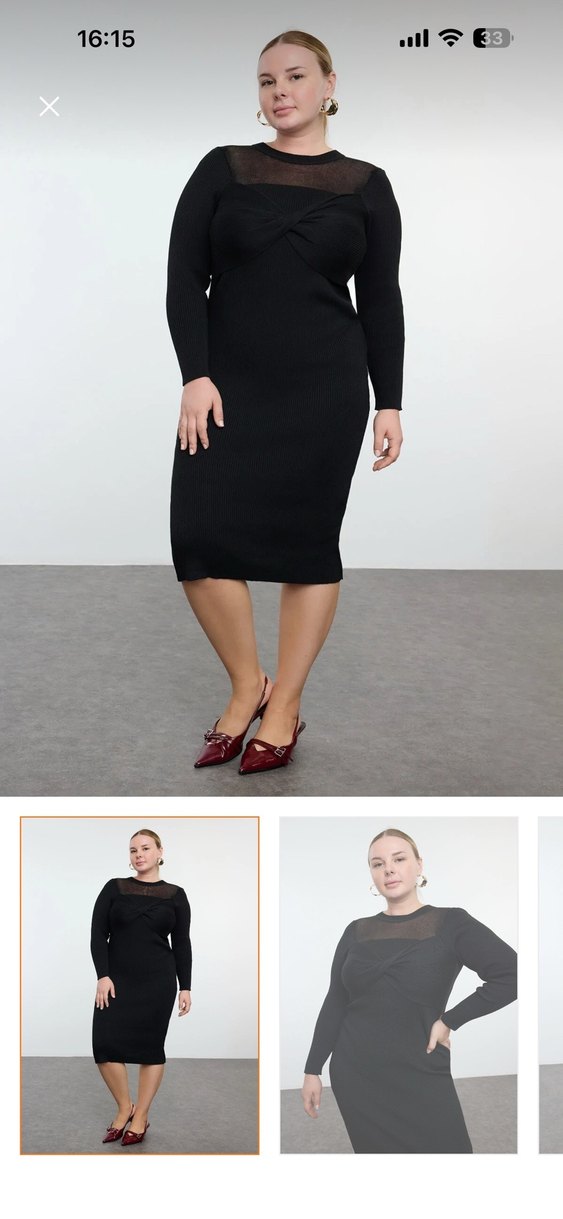 Siyah midi kalem elbise, V yaka ve askılı kollara sahip, yumuşak kauçuk kumaştan yapılmıştır. Ofis için cesur ve çağdaş bir stil sunar.