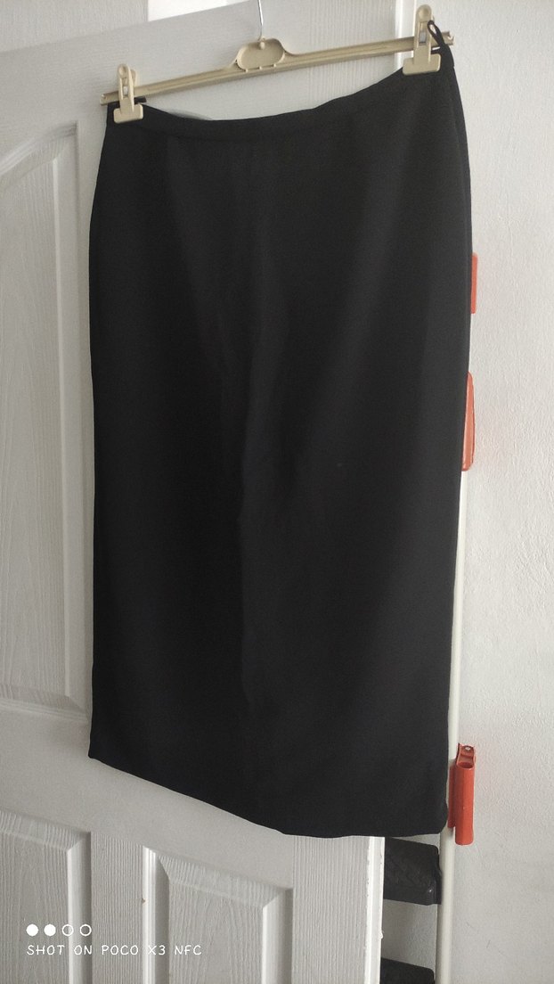 Siyah midi uzunlukta, düz ve sentetik kumaştan yapılmış, rahat kesimli bu etek ofis için şık ve kolay kombinlenir.