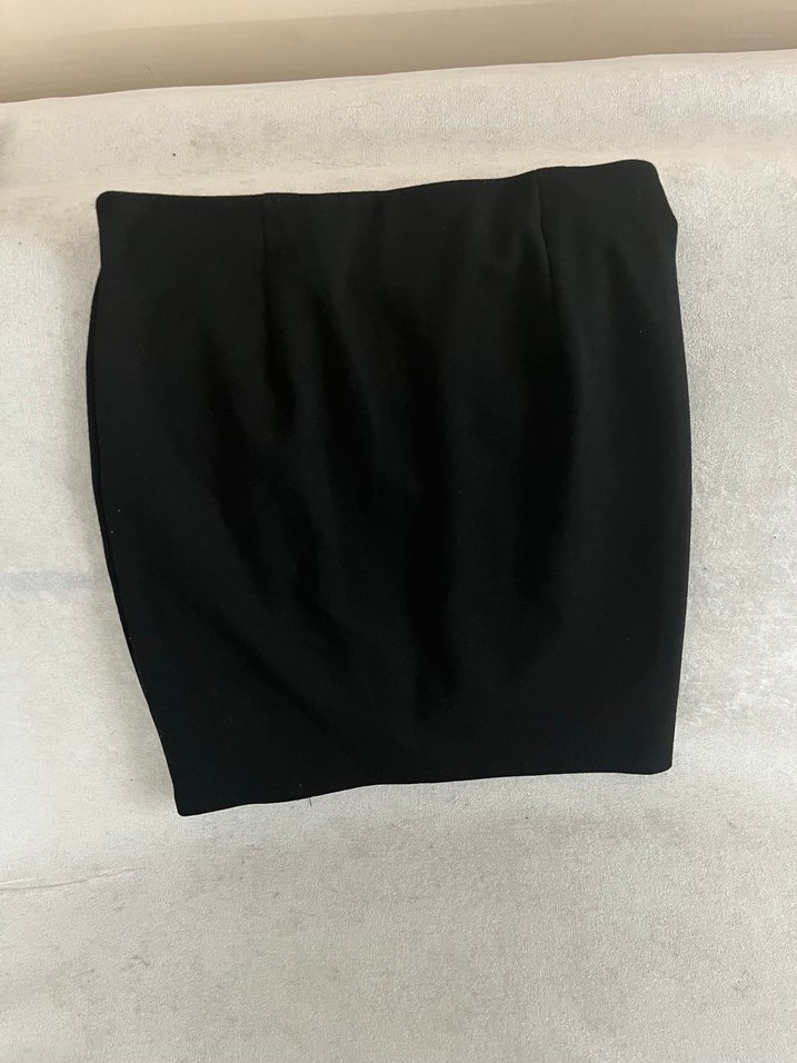 Siyah, vücuda oturan midi kalem etek, düz ve sade tasarımıyla ofis ve günlük kullanım için uygundur. Pürüzsüz sentetik kumaştan üretilmiştir. ✨