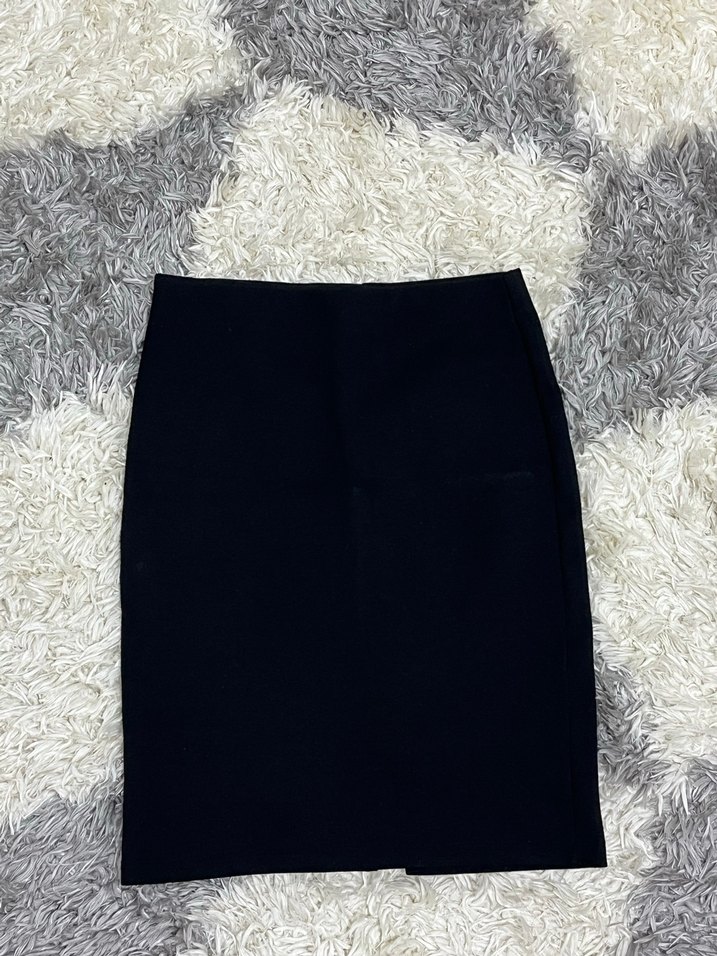 Sentetik kumaştan, detaylı siyah midi kalem etek. Ofis için uygun, düzenli kesim ve goth tarzıyla öne çıkar.