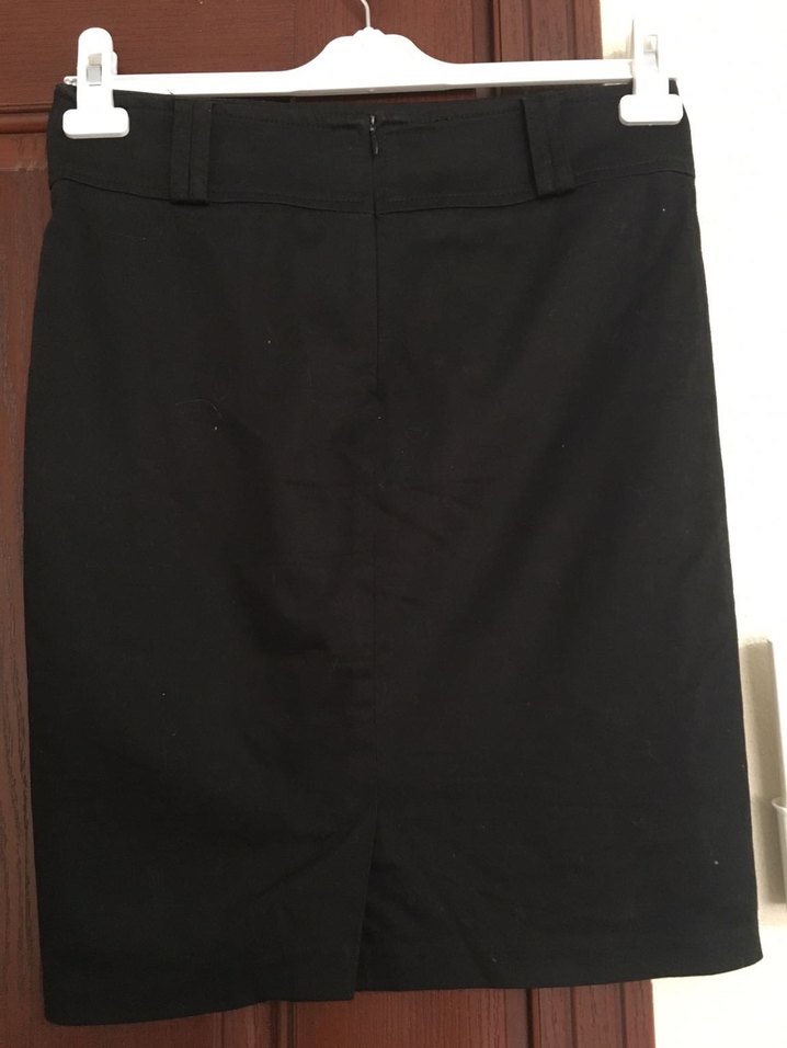 Siyah midi kalem etek, regular kesim ve kemerli bel detayına sahiptir. Düz ve goth tarzıyla ofis kullanımı için uygundur.