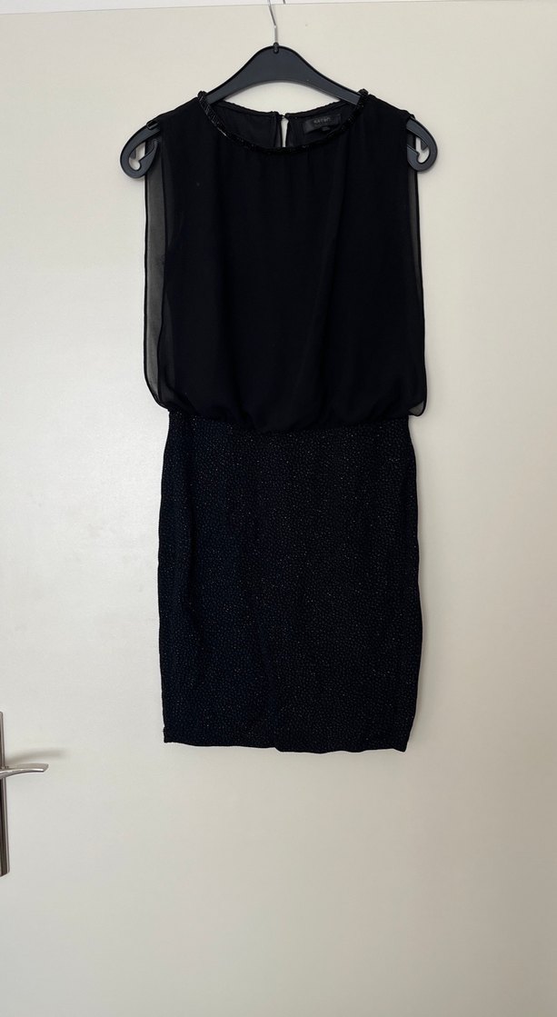 Siyah renkli, kolsuz ve bisiklet yakalı midi elbise, kemer detayıyla belinizi vurgular. Minimalist ve desen içermeyen tasarımı klasik şıklık ve ofis kullanımı için uygundur.
