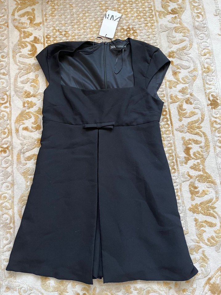 Bu siyah, kemerli, straplez midi elbise, ofis ortamına uygun gotik tarzda dar kesimdir.