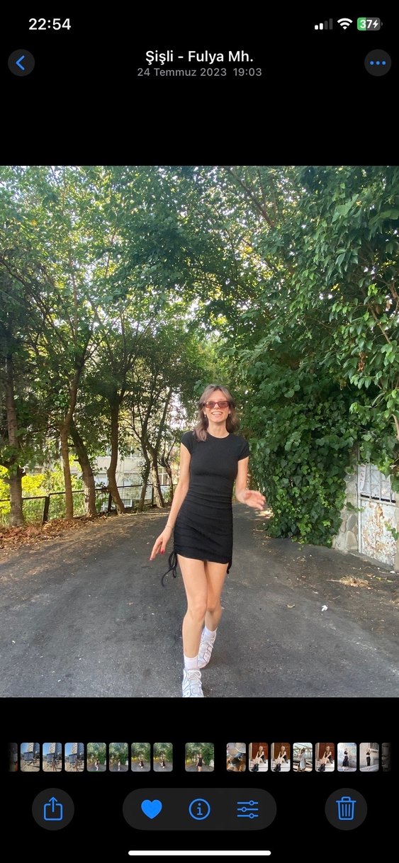 Siyah, kısa kollu, straplez görünümlü, sentetik kumaştan, sokak stiline uygun midi boy dar kesim elbise. Rahat ve şık dış mekan kullanımı için ideal.