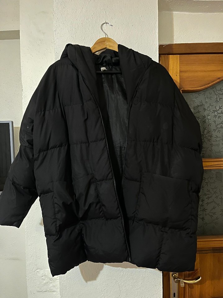 Siyah midi uzunlukta kışlık kadın mont, uzun kollu ve yaka detaylıdır. Rahat kesimi ve fermuarlı kapanışıyla yumuşak, sıcak kumaştan üretilmiştir. Günlük kullanıma uygundur. ❄️