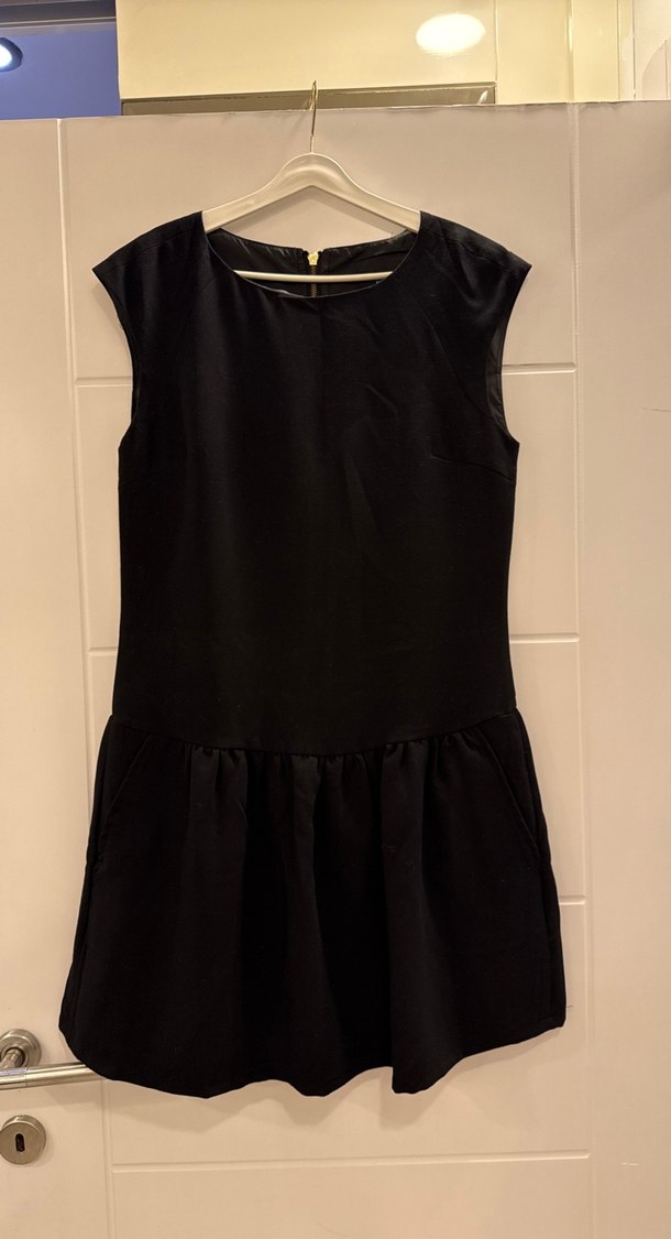 Siyah Midi Kolsuz cepli Kadın Elbise