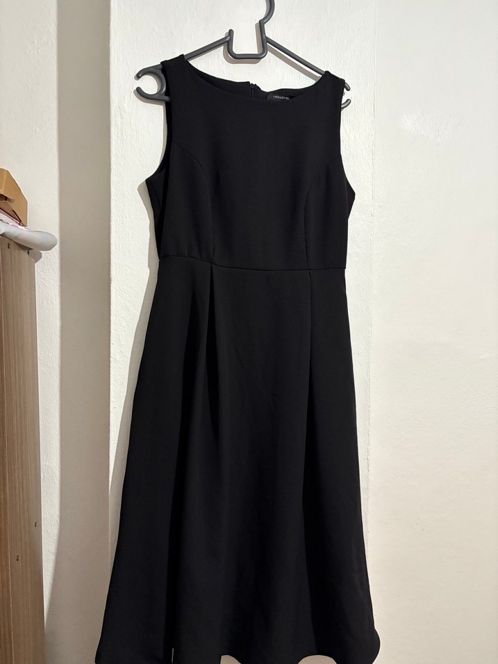 Kolsuz, siyah midi ve halter yakalıdır. Düzenli kesim, gotik ve ofis için uygundur. Hiç giyilmemiştir fakat etiketi yoktur. Trendyol Milla eski sezonundandır.
