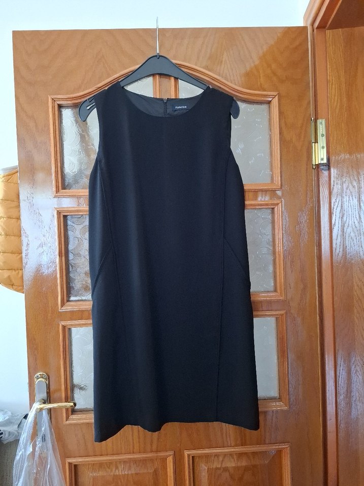Kolsuz, bisiklet yaka, drapeli siyah midi elbise. Düzenli kesim ve desen içermeyen minimal bir tasarıma sahiptir, günlük kullanıma uygundur. Az kullanıldı. Tertemiz.