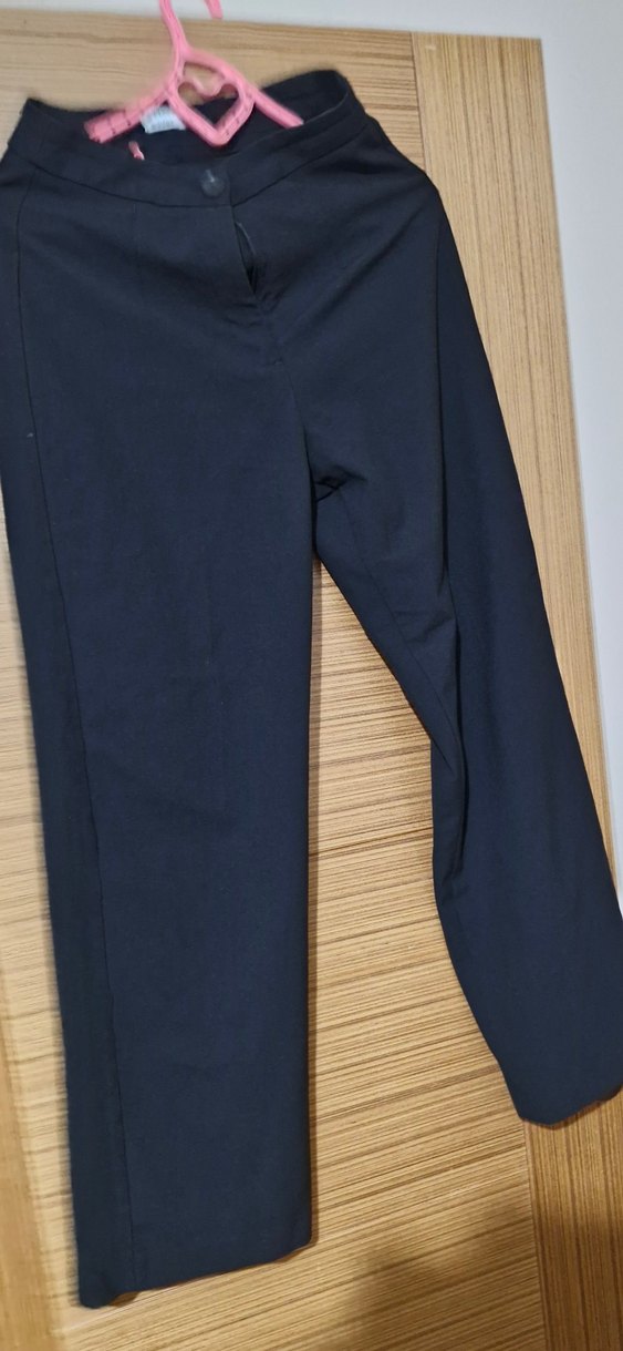 siyah midi uzunlukta, regular fit kumaş pantolon. Ofis ve iş ortamı için uygun, yırtmaç detayıyla trend casual stil sunar.