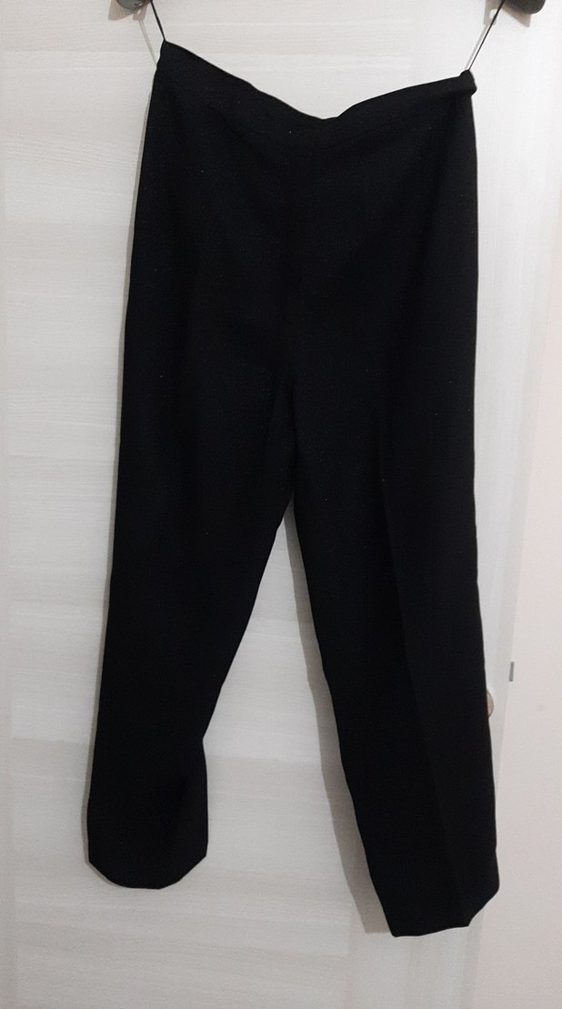 Siyah midi uzunlukta, düzenli kesim kumaş pantolon. Yumuşak ve sıcak dokulu, minimalist ve sokak stiline uygun, ofis kullanımı için ideal. uzun pantolon