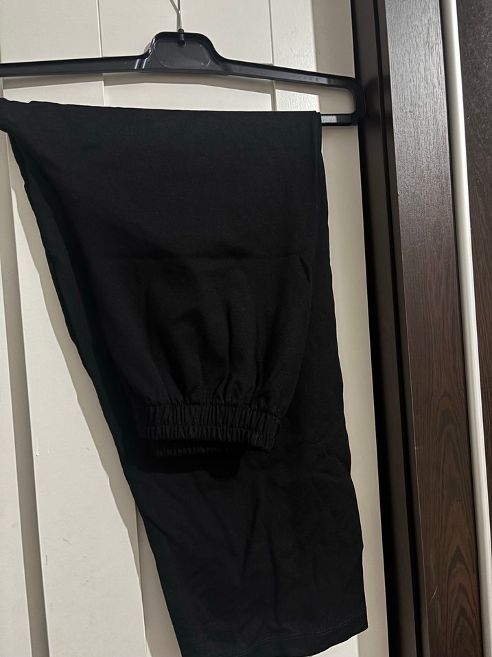 Siyah midi uzunlukta, düz desenli kadın pantolonudur. Rahat sentetik kumaştan ve regular fit kesimdedir. Günlük kullanım için elastik bel bandıyla konfor sağlar.