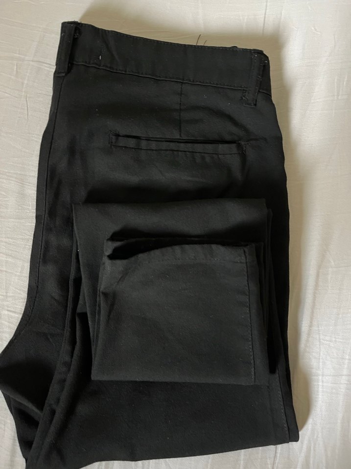 siyah midi uzunlukta, regular fit kumaş pantolon. Sentetik kumaştan yapılmış, minimal ve zahmetsiz şıklık sunar, günlük kullanım için uygundur.