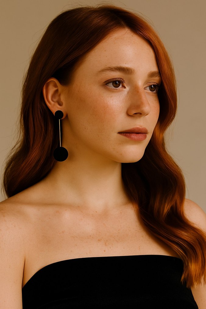 Romantik akşamlar için siyah midi uzunlukta, sade ve çağdaş tasarımlı kadın küpeleri. Cesur ve zahmetsiz şıklık sunar.
