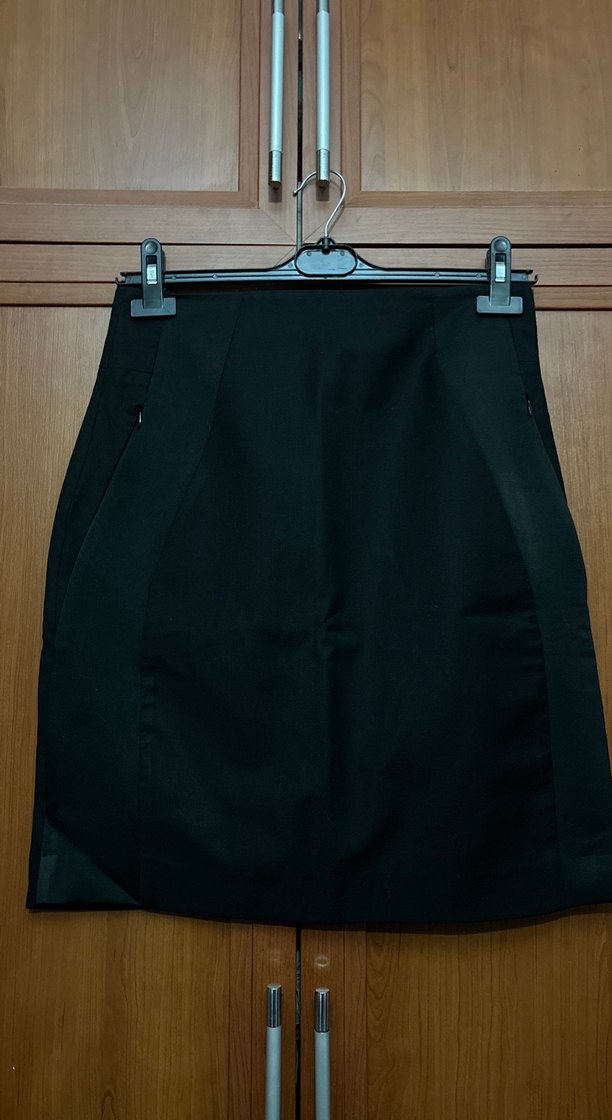 Beltli bel ve midi boy uzunluğa sahip siyah kalem etek, düz ve desensiz tasarımıyla ofis ve iş stiline uygun, sentetik kumaştan.beden 2 yazıyor kalıbı küçük