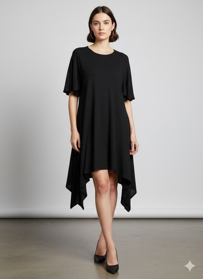Siyah Midi Salaş Drapeli Elbise