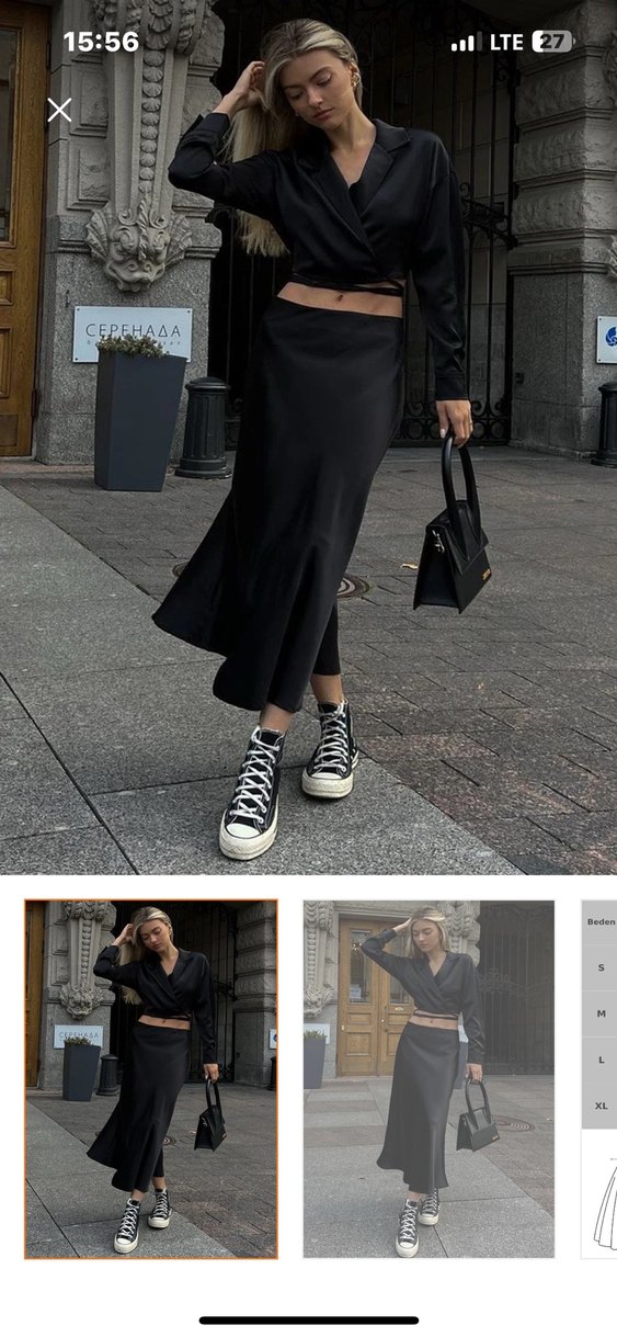 Siyah Midi Saten Kadın Etek