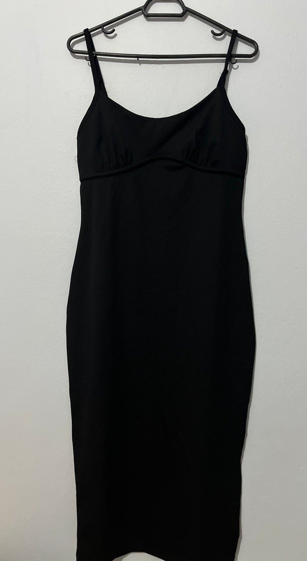 Bu siyah midi elbise, kolsuz , fit kesimiyle cesur ve minimalist goth tarzını yansıtır. Romantik akşamlar için uygundur. Boy. 93cm