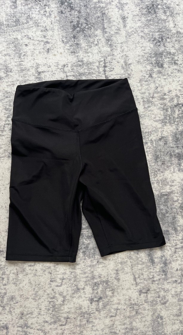 Yumuşak sentetik kumaştan, siyah, hamilelere özel, midi boy, sade ve şık spor şort.