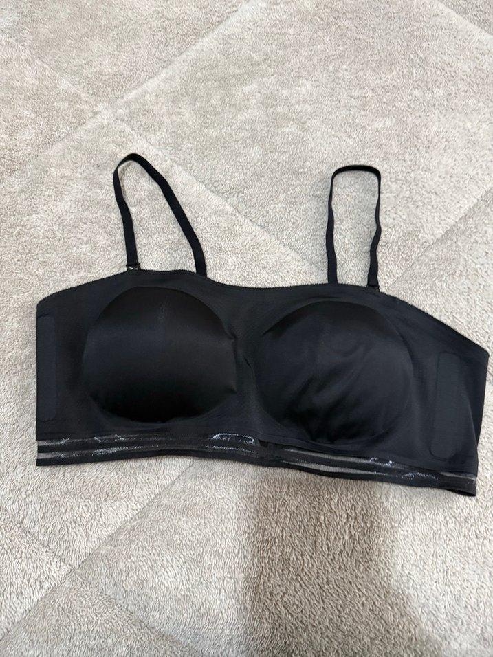 Ayarlanabilir askılı, siyah midi uzunlukta spor sütyeni. Düz ve rahat kumaştan, sokak stili için uygundur.