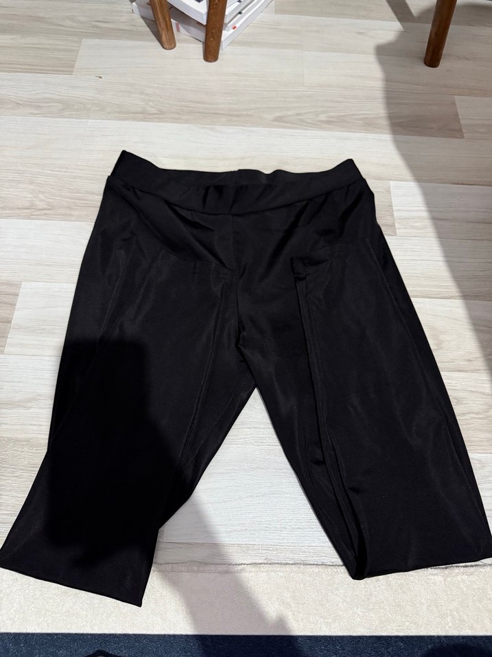 Düz siyah midi tayt, sportif ve sokak stiline uygun, rahat ve şık sentetik kumaştan yapılmıştır.