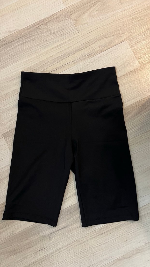 Spor ve günlük kullanım için uygun, siyah midi boy, vücuda oturan, yumuşak sentetik kumaştan tayt. Rahat ve sade tasarım.
