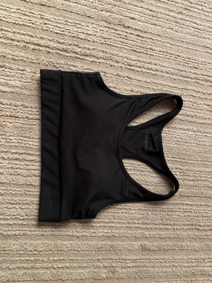 Siyah midi uzunlukta, desensiz ve streetwear tarzında sporcu sütyeni. Rahat ve şık bir athleisure parçası.