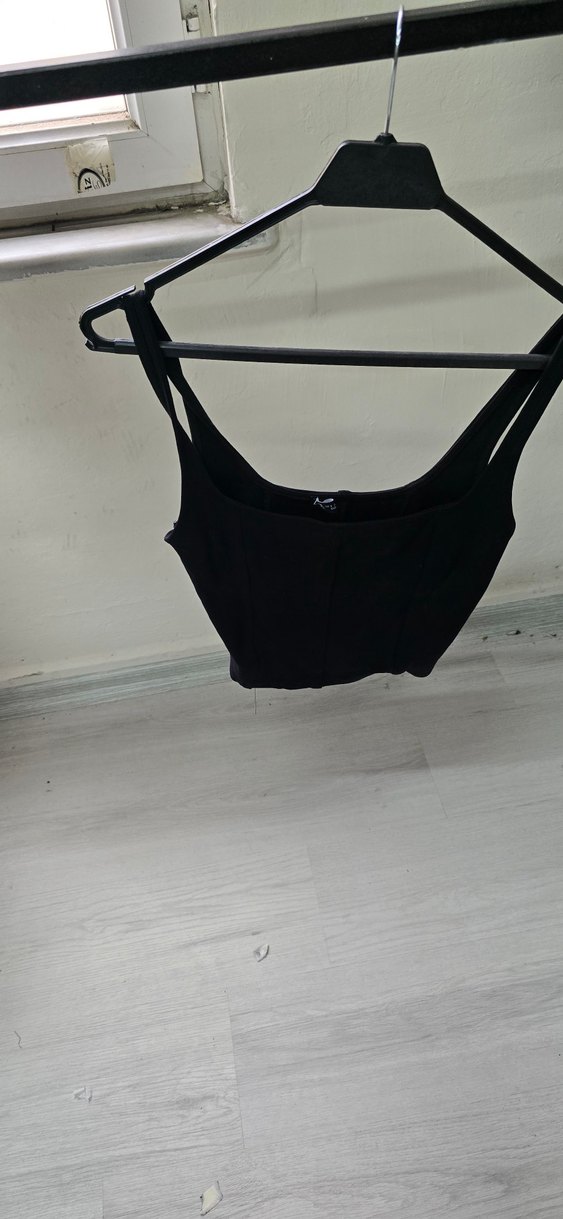 Siyah renkli, ince askılı, desen içermeyen midi uzunlukta sporcu sütyeni. Streetwear athleisure tarzında rahat bir model.