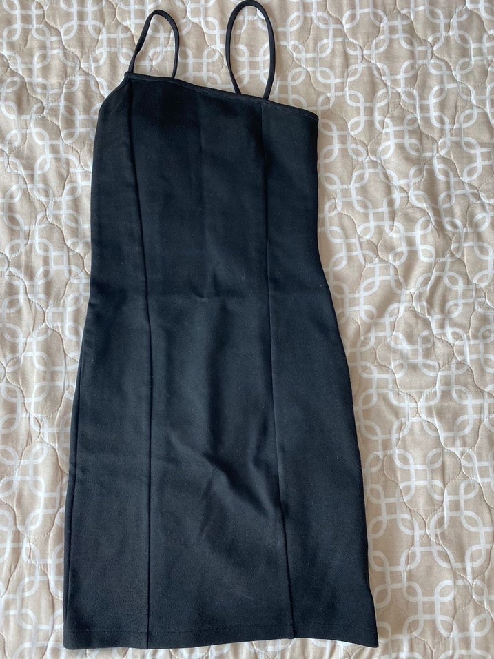 Bu siyah midi kalem elbise, ince askılar ve straplez yakasıyla dar kesime sahiptir. Sentetik kumaştan yapılmış olup drapeli detaya sahiptir, günlük kullanıma uygundur.