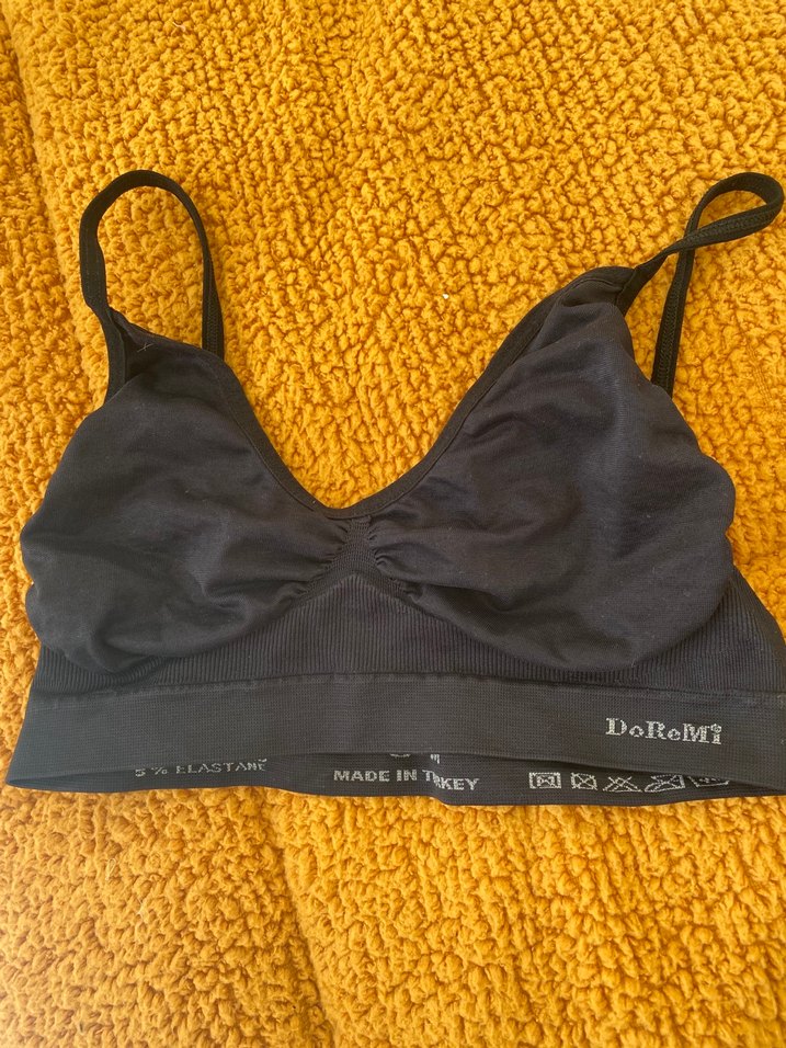 Siyah, desensiz ve normal uzunlukta, esnek askılı rahat bir sütyendir. Türkiye'de üretilmiştir ve DoReMt markasını taşır. Spor sütyeni veya normal
