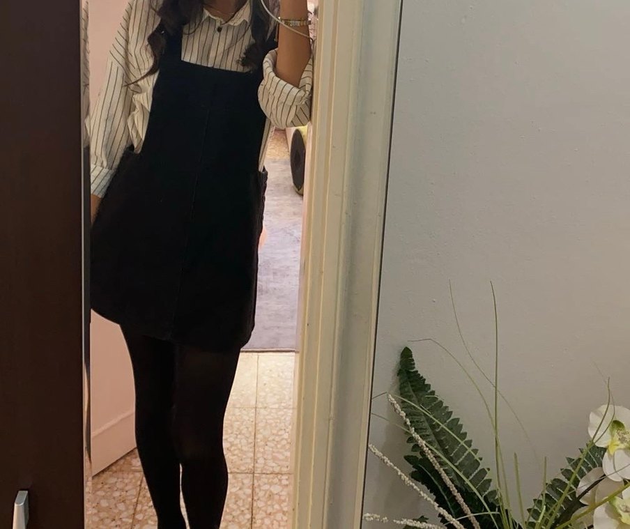 Düğmeli yan detaylı, straplez yakalı siyah midi tulum. Pürüzsüz sentetik kumaştan, grunge punk tarzında hafif batik desenli.
