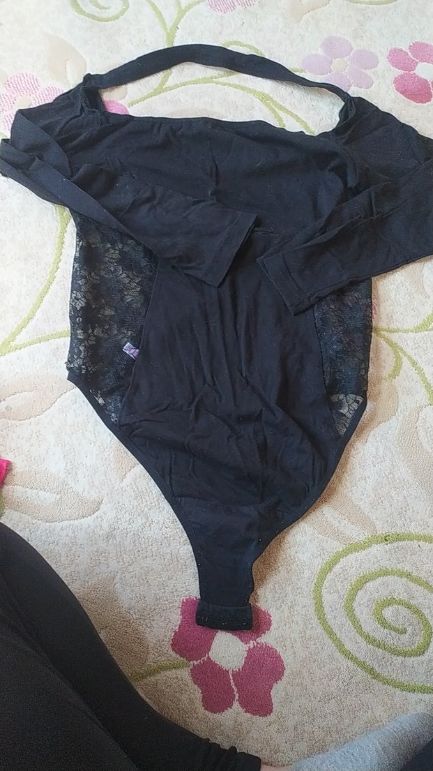 Uzun kollu, dantel yan detaylı siyah midi uzunlukta body, rahat ve gotik tarzda.