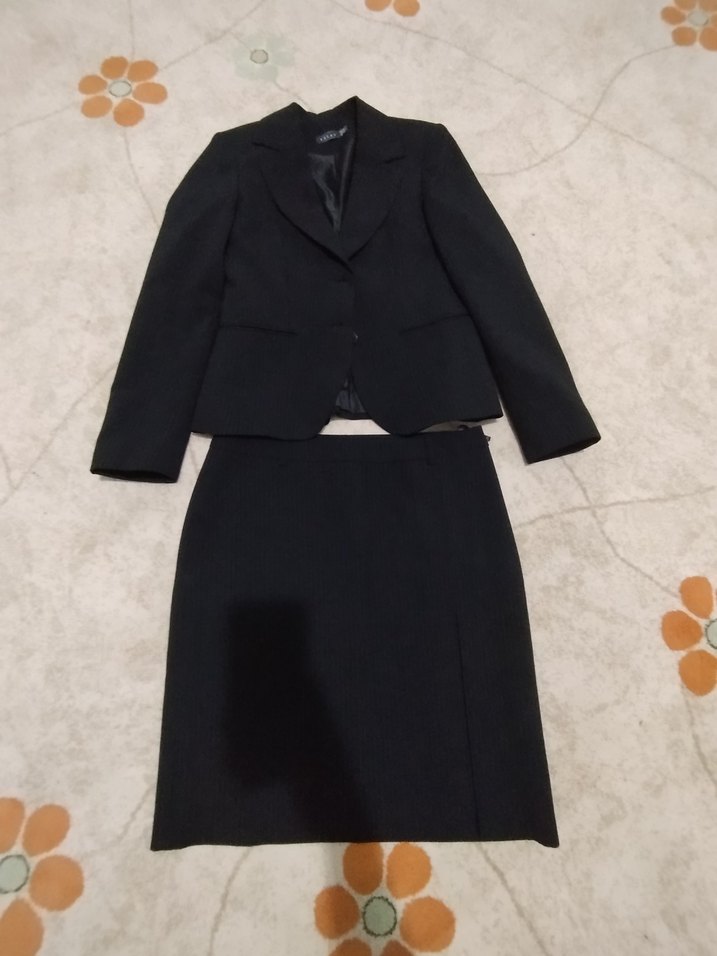 Siyah midi etek ve uzun kollu ceket içeren kadın takımıdır. Klasik, şık ve ofis için uygundur. Kumaşı yumuşak ve rahattır.