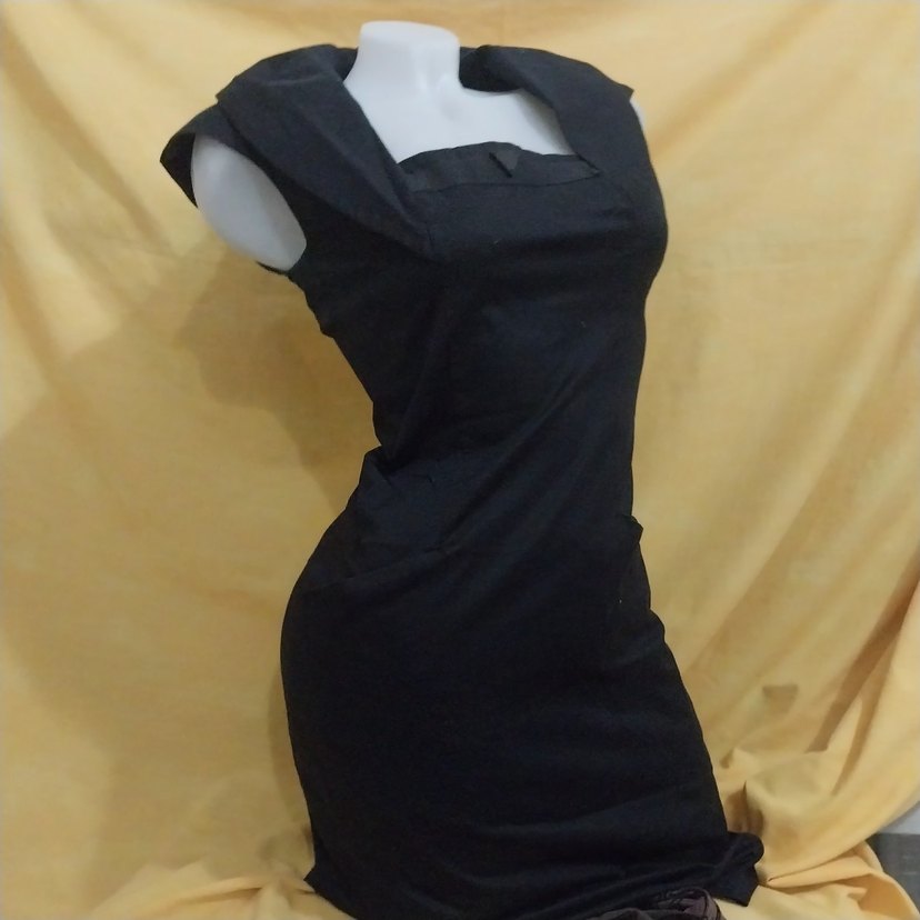 Siyah midi uzunlukta, V yaka ve kolsuz tasarıma sahip, klasik gotik tarzda, rahat kesimli ofis elbisesi. Zahmetsiz şıklık sunar.