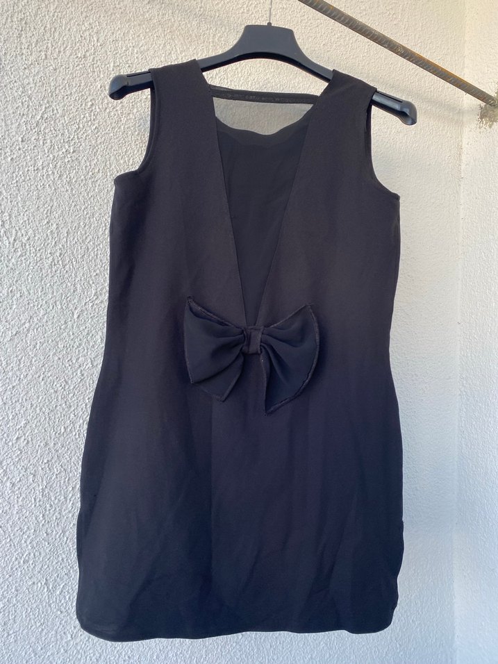 Siyah Midi V Yakalı Fiyonk Detaylı Elbise