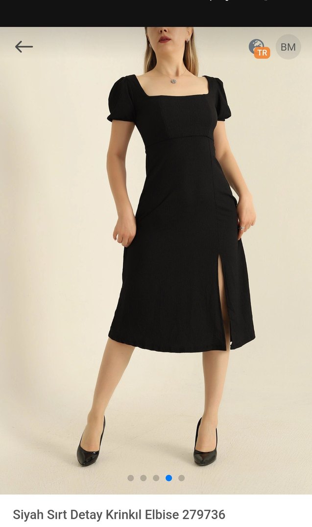 Siyah midi elbise, kare yaka ve kısa kollu, sentetik kumaştan. Klasik goth tarzı, normal kesim ve yan yırtmaç ile zahmetsiz şıklık sunar. arkası bağcıklı. hiç giymedim sütyensiz rahat edemediğim içn