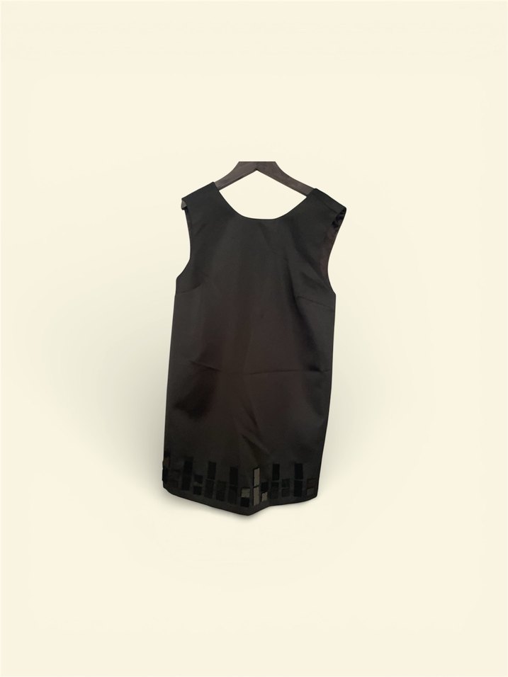 Siyah,iYuvarlak yakalı, düzenli kesim, sentetik kumaştan taş detaylı elbise not : son fotoda defosu var