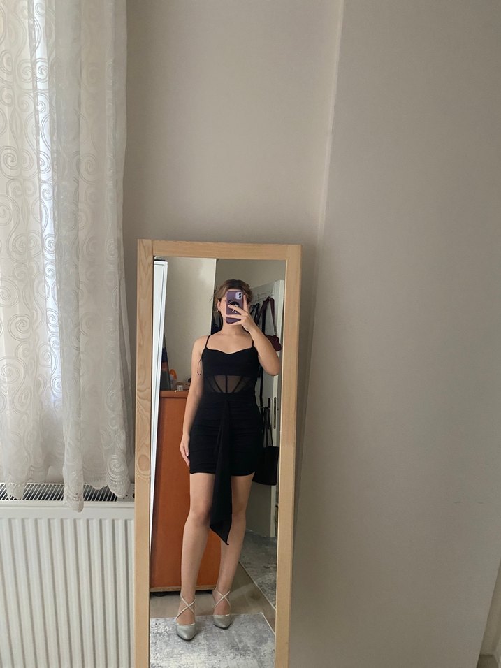 Siyah, transparan detaylı elbise